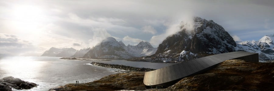 Furthest west of Lofoten in Moskenes, will sit a 11,000-square-metre building that will include the Lofoten Opera Hotel. Imagined by architecture firm Snøhetta, the hotel will be located at the top end of the curved-body building. the low-rise structure will be placed on an outlying site in Slapen flanked by a mountain range. It will loop a central courtyard and offer spectacular views out across the sea to the south and west.