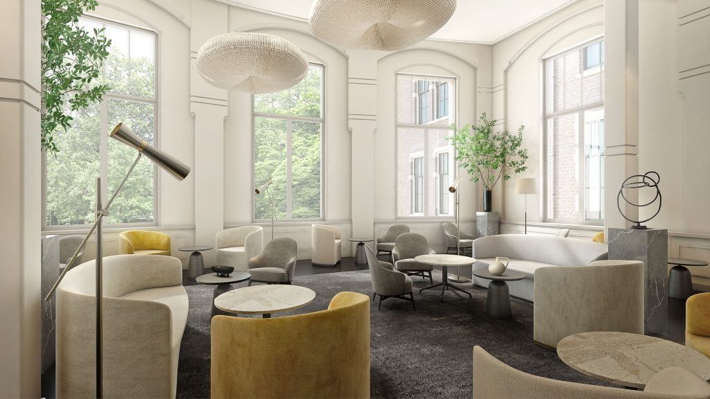 In the heart of Amsterdam, a 20th-century monumental building has been given new life as a luxury five-star hotel, following a delicate and meticulous transformation process. Maurits at the Park is the seventh property from Pillows Hotels, the acclaimed hospitality brand known for its refined hotels and restaurants in the Netherlands and Belgium. All images are renderings.