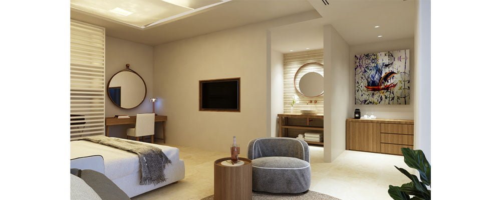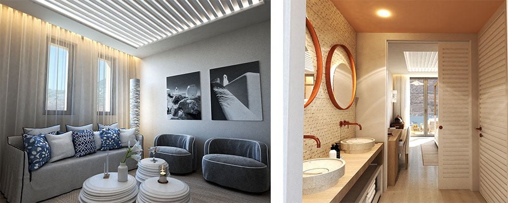 The island’s newest and most exclusive luxury resort. Above: Once in Mykonos, Greece. Premium Suite Sea View.