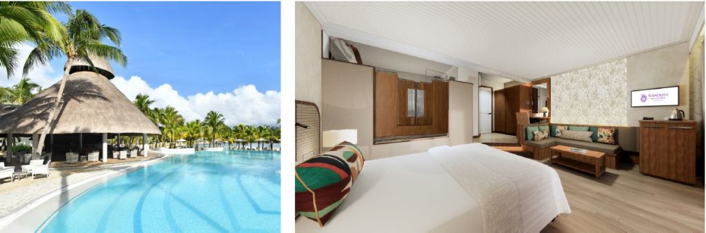 Shandrani Beachcomber, Mauritius is set reopen in October 2025 after a four-month transformative renovation. Above: Pool and Tropical Ground floor Room. Top: Bayview Room – upper floor & Beach Room – Ground floor