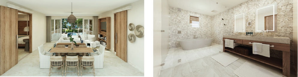 Surrounded by bountiful local fresh herbs, produce, fish and even one of the largest cattle farms in the Caribbean, dining at Sandals Saint Vincent and The Grenadines will bring the local agriculture forward for guests to savour across 16 food and beverage concepts. As the brand’s first communal-style restaurant, Buccan’s menu of seasonal platters meant for sharing will be complemented by an action-packed open kitchen. Imoro, an all-new grab-and-go concept named for the local indigenous word for ‘green,’ will serve healthy bowls best enjoyed waterside. Local materials, playful patterns, and tropical plants will adorn Three Jewels, a rum bar, an ode to the flag of Saint Vincent and The Grenadines, serving Eastern Caribbean rums as well as new creations ranging from zero-proof to spirit-forward, all served to the sounds of Caribbean vinyl classics. Parisol, an open-air beach club and kitchen, will serve small plates near the water before transforming into a high-end evening destination for cocktails, music, and picturesque sunset views.