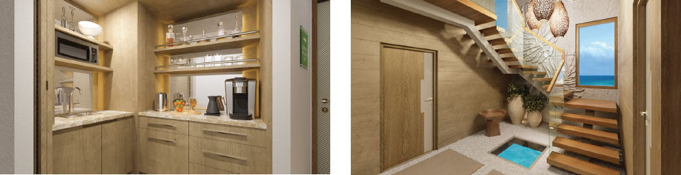 Above and below: Vincy Overwater Two-Story Villa