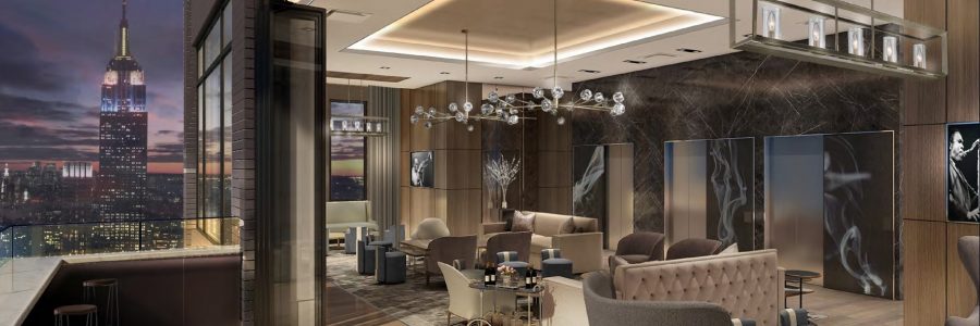 Developed by Aliz Group, LLC and managed by Crescent Hotels & Resorts, Aliz will also boast the tallest rooftop bar in NYC. The two-story bar and lounge located on the 40th and 41st floors will feature spectacular views of both upper and lower Manhattan, including the Empire State Building, Freedom Tower, Statue of Liberty, and the Hudson River.
