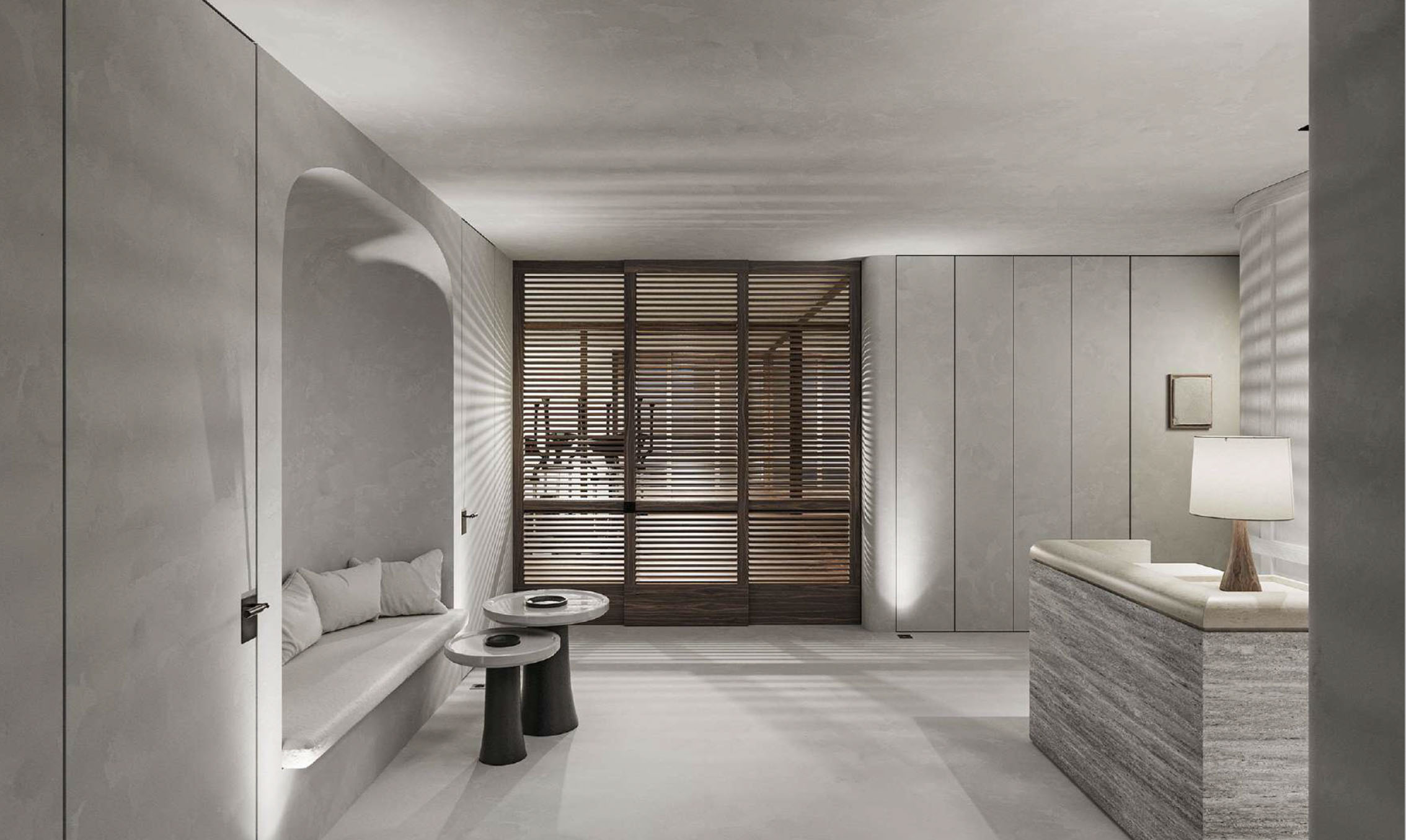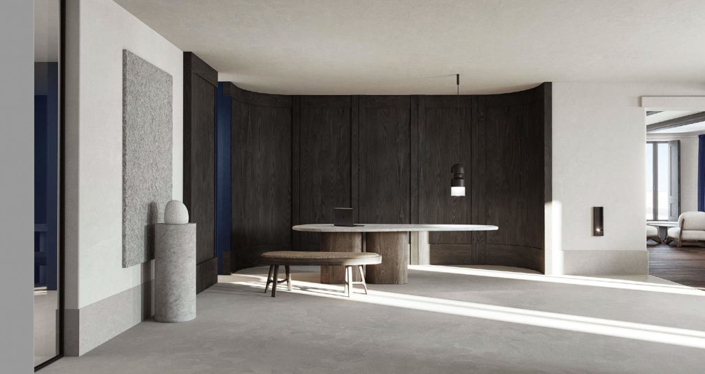 Above and top: Reception. All images are renderings.