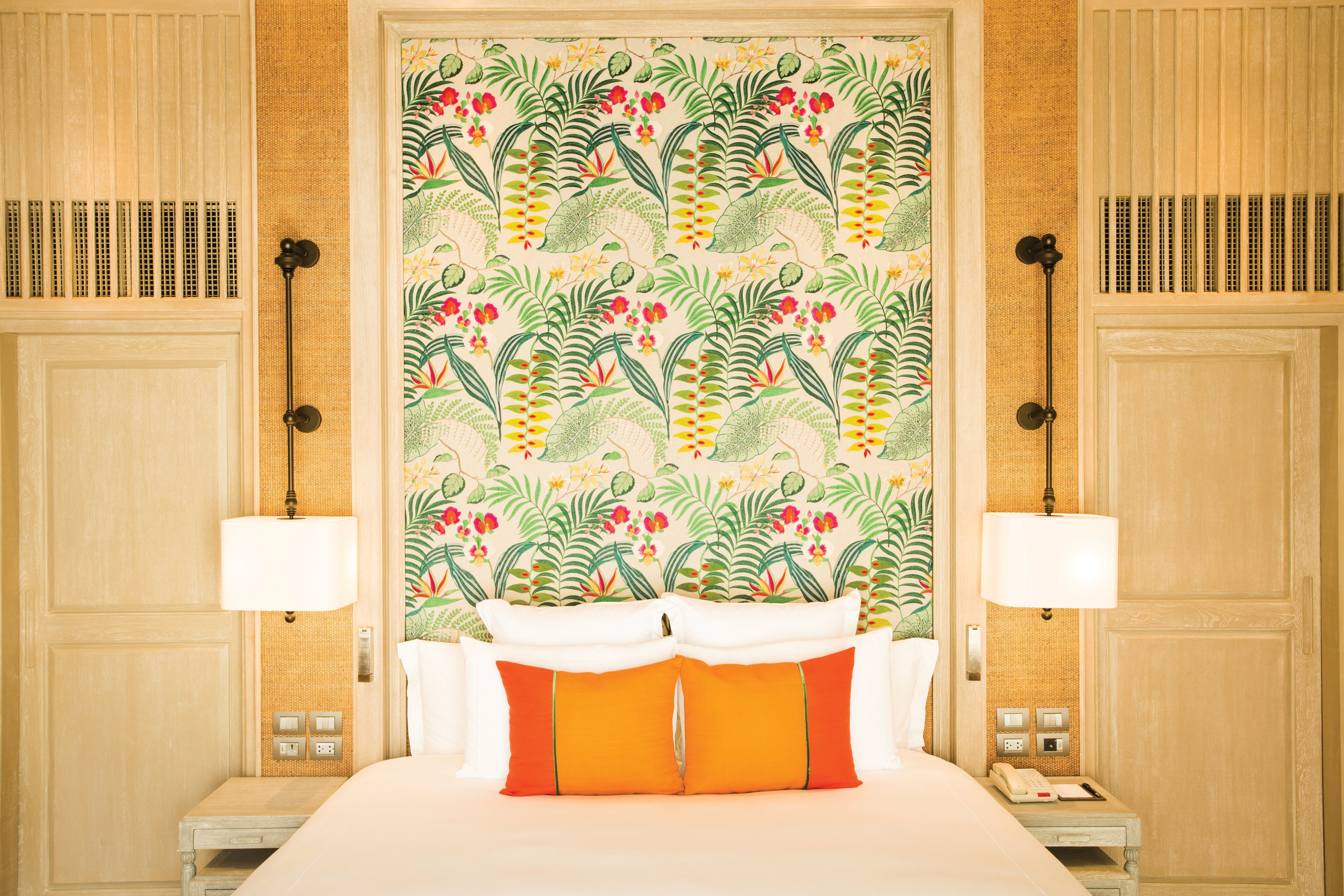 The finest silks from the famed Jim Thompson collection transforms the opulent Presidential Suite at Anantara Mai Khao Phuket Villas.