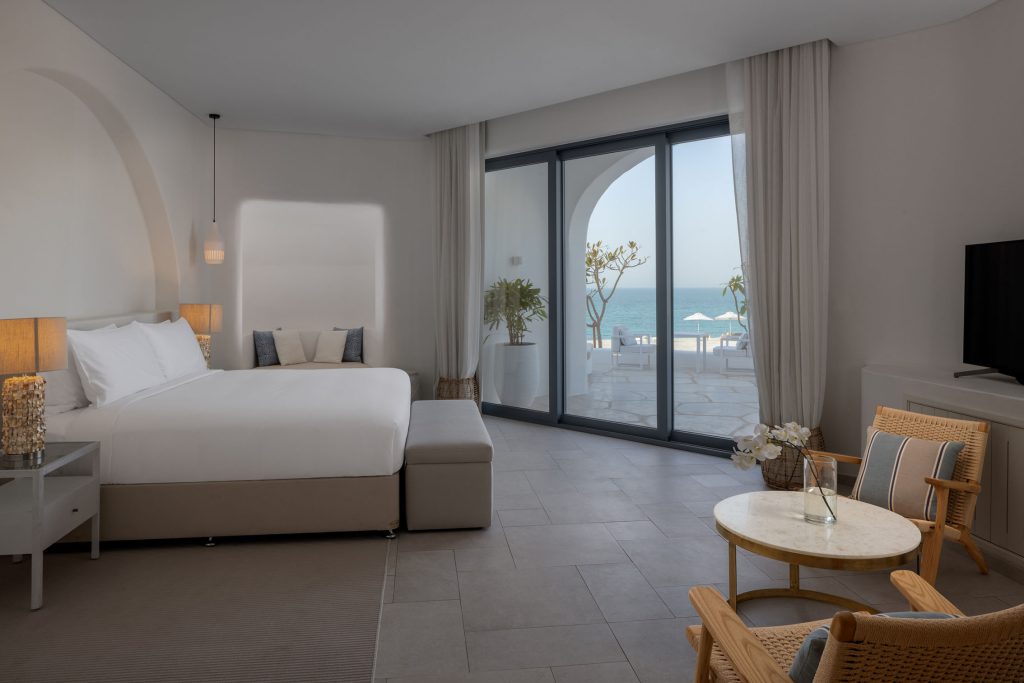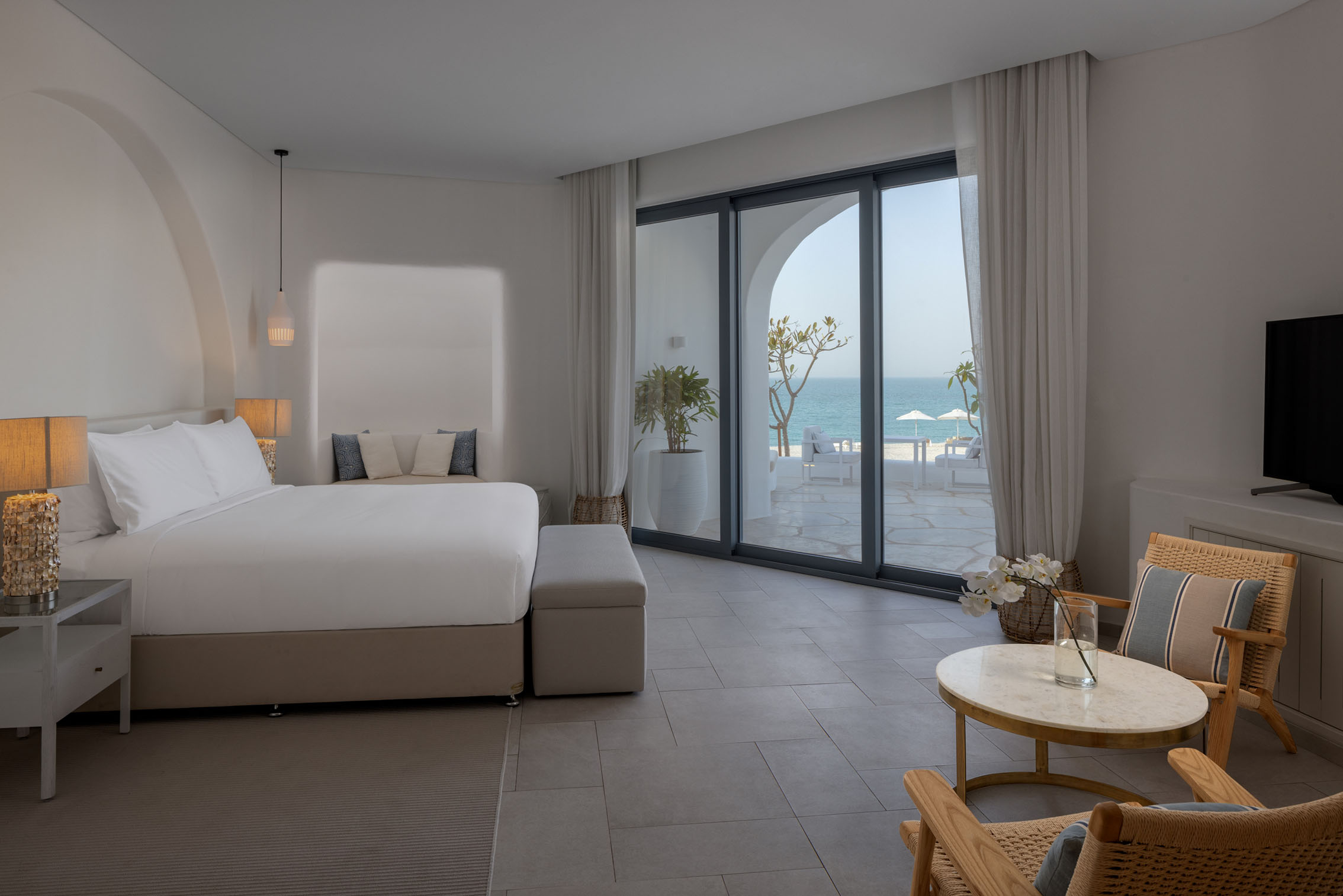 Located on the coast, approximately halfway between Abu Dhabi and Dubai, the intimate adult-only property offers 22 luxurious guest rooms and suites in coastal tranquillity, with an effortless grace inspired by the eponymous Greek island.