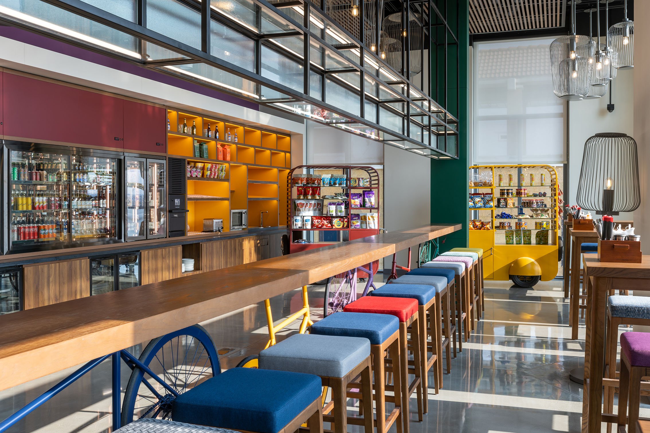 For the hotel guests, the bedrooms have been efficiently designed to be compact, with bespoke furniture that maximises space usage and with a strong brand identity throughout. With three different colour spectrum schemes (each made up of three key Wink-branded colours), the external sunshades act as an extension to the hotel interiors and reflect the colour themes found in each hotel bedroom.