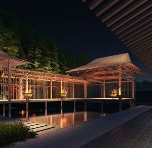 Banyan Tree Higashiyama Kyoto has constructed a unique Noh stage on its premises to reflect this boundary nature. Designed by renowned architect Kengo Kuma, this is the only Noh stage in a Kyoto hotel. The design of the rafters creates a Noh stage that embodies both presence and ephemerality, blending seamlessly with the natural surroundings of Higashiyama. The elegant stage serves as a venue for traditional Nohgaku, contemporary art performances, and musical events, offering guests an unforgettable cultural experience.