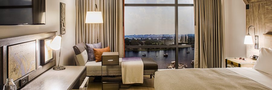 Canopy by Hilton Washington D.C., The Wharf offers tiered variations of 175 “Just Right” rooms with sweeping riverfront or city views. Guestrooms are thoughtfully designed for comfort and function with local influences. The distinctive interiors include nautical touches inspired by the history and beauty of the riverfront. Warm grey and beige tones create a relaxing atmosphere along with a splash of orange, Canopy’s signature colour. Guests will also experience contemporary bathrooms with illuminated mirrors and a luxurious shower experience. Other guest amenities include 55” TVs, refrigerated drawers, Nespresso machines and plenty of places to charge tech devices.