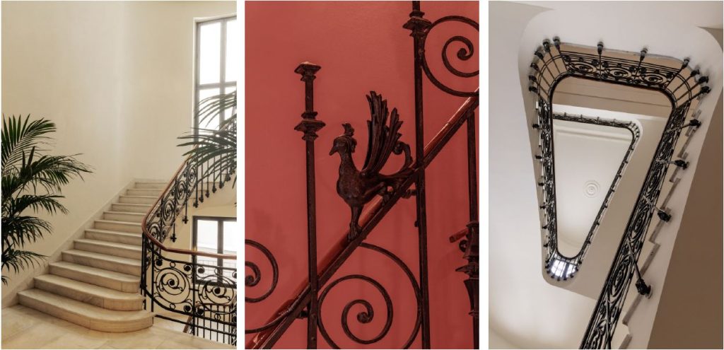 Among its cultural spaces, the private cinema room is a standout; Inspired by the classic Hollywood screening rooms of the 1950s, it provides a nostalgic connection with the seventh art, film. Literary lovers can retreat to the library to unwind amidst the bookshelves in a cozy and peaceful atmosphere. The hotel also boasts a number of leisure spaces including a thermal pool and a fitness centre, ensuring both mind and body stay invigorated.