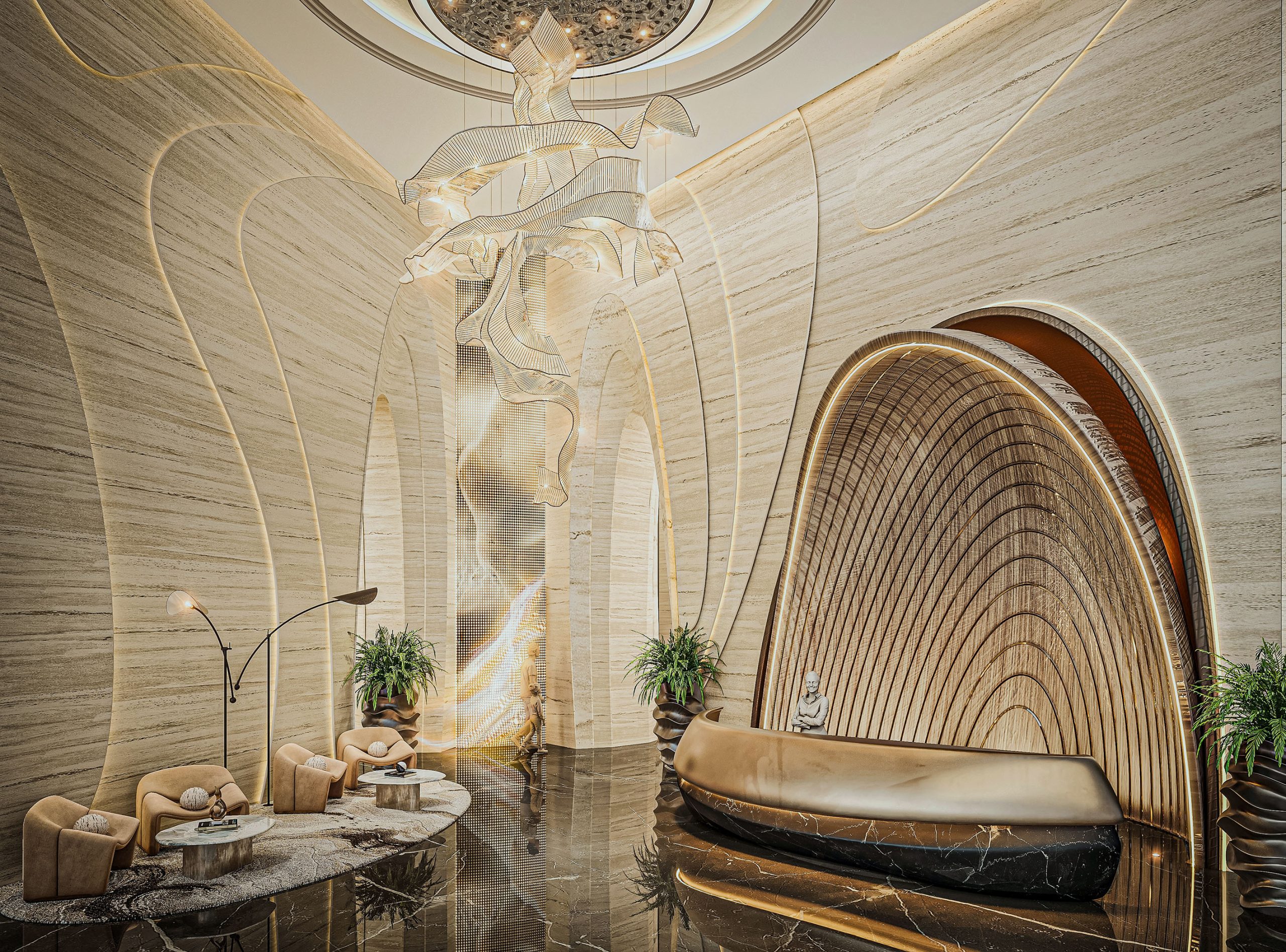 Reception Lobby. The all-hotel tower will redefine upper-upscale hospitality, blending innovation, luxury, and creativity through its striking design, world-class amenities, and breathtaking vistas”.