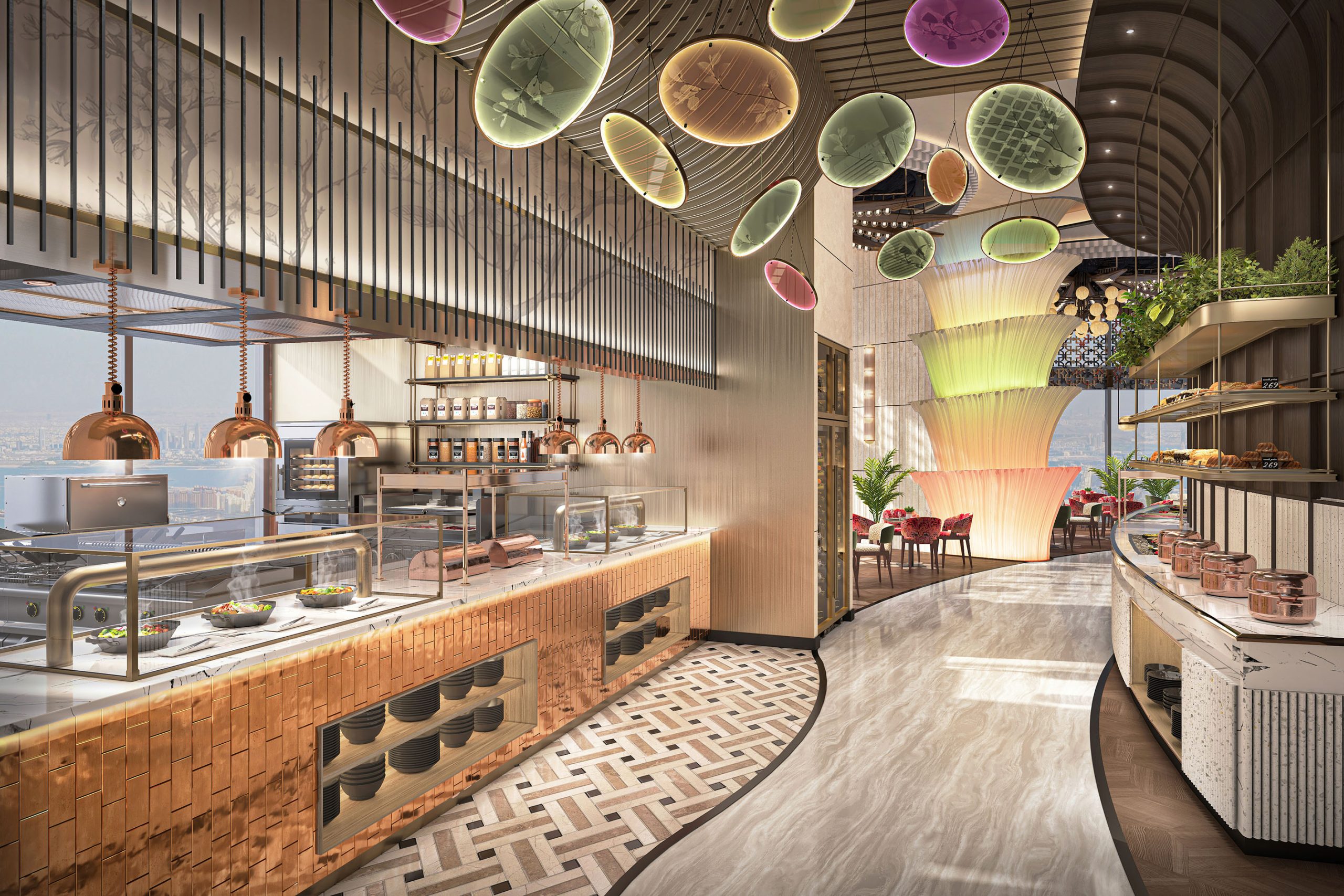 The hotel will be home to eight unique dining venues where immersive design meets extraordinary flavours. West 13 is a celebration of Mediterranean warmth and vibrancy, drawing inspiration from Italy, Greece, Spain, France, and Latin America. Guests will experience a lively atmosphere of open kitchens and seasonal, sustainably farmed produce. Handmade pasta, Greek gyro stations, tacos, empanadas, and mezze are just a few of the dishes that will be crafted fresh each day, alongside a selection of artisanal bakery items made in-house. East 14 offers a sensory journey through the East, blending flavors from Asia, India, Thailand, Malaysia, Singapore, and Vietnam. Served buffet-style, the venue will feature live Ramen and Pho stations, Sushi and Dim Sum counters, and rich Indian curries, all complemented by a vibrant selection of Asian salads, breads, and condiments.