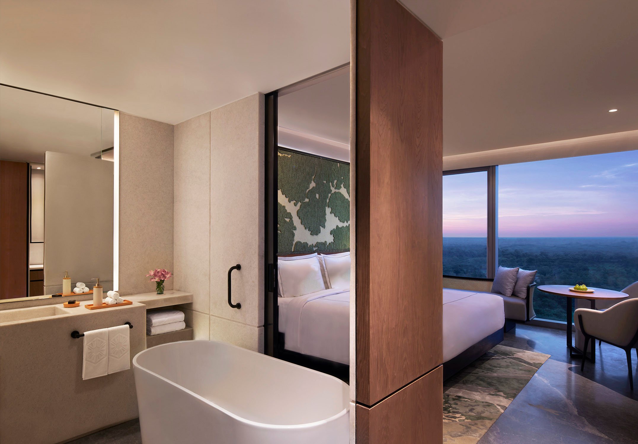 Taj the Trees comprises 151 guestrooms, including King Rooms, two-bay suites, and the Presidential Suite. These rooms offer breathtaking views of the mangroves or the pool podium and are designed to be open, airy and welcoming. They feature openable bathrooms, intricate joinery, and artwork inspired by the site’s context.