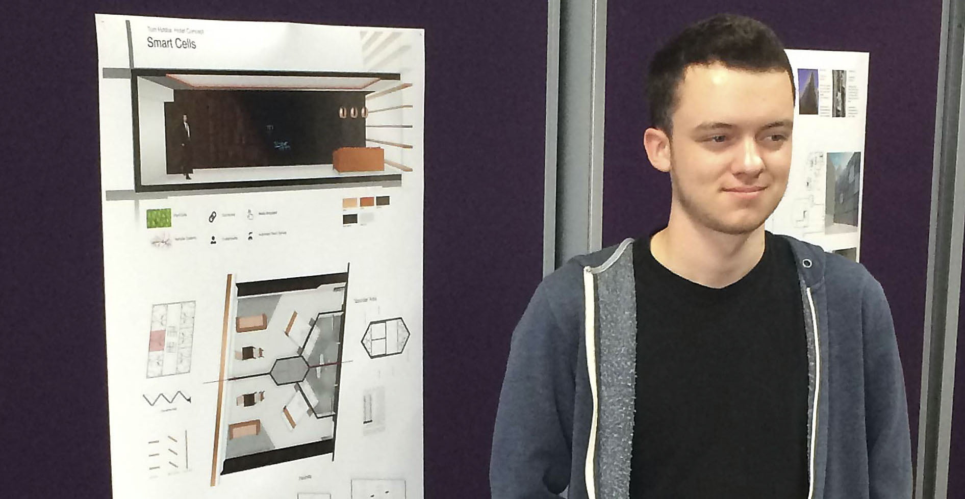 Earlier in the year, students were given a detailed brief to follow in producing their project proposals. They were instructed to design a hotel and office space, along with other dedicated and mixed-use areas, which would primarily serve creative sector workers and their guests in a new development next to the Tate Modern on the south bank of the River Thames in London. Seven students presented their proposals and the winner was architecture student Thomas Hobbs, in his second year of studies in architecture and design.