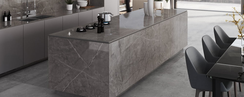 A next-generation development of the high shine Dekton® XGloss surfaces, Stonika offers all the benefits of standard Dekton®, including a high resistance to heat, scratches, staining and UV rays.  Suitable for use both indoors and out, the new Dekton® Stonika designs can be used for a range of projects, such as kitchen and bathroom worktops and wall cladding.  Available in a variety of thicknesses (8mm, 12mm and 20mm) and large format slabs up to 320cm x 144cm, a multitude of creative possibilities can be imagined.