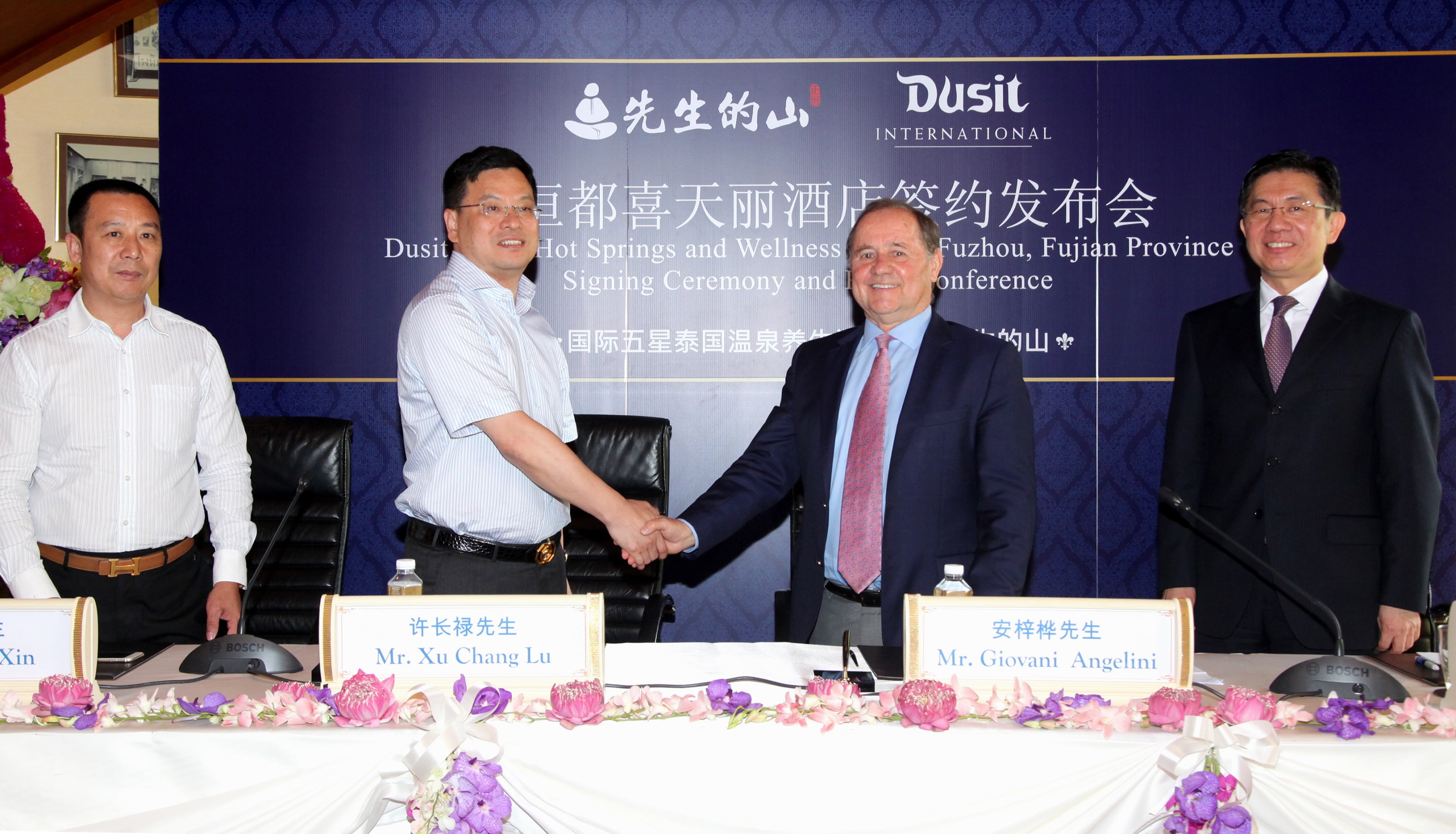 Dusit Fudu Hotels and Resorts announces the signing of an agreement with Zheng Heng Group to manage the new deluxe Dusit Thani Resort in Fuzhou, Fujian Province, the first internationally branded hot springs and wellness resort in the area. The agreement was signed by senior executives from both parties at a ceremony held at the flagship Dusit Thani Bangkok hotel on 6 May 2016.
