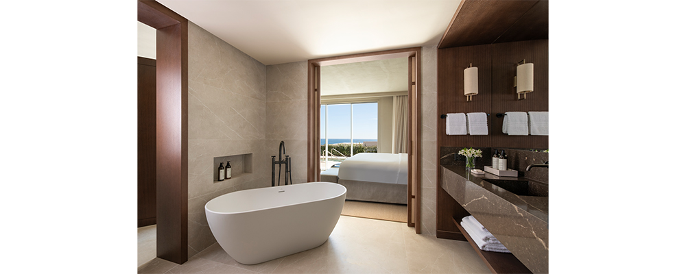 Panoramic views of the Mediterranean Sea add to the sense of space, while carefully selected pieces by local artisans celebrate the region’s artistic heritage. The resort’s 47 private villas, each with its own pool and spacious terrace, are inspired by the whitewashed charm of an Andalusian village, creating an atmosphere of serenity and exclusivity.