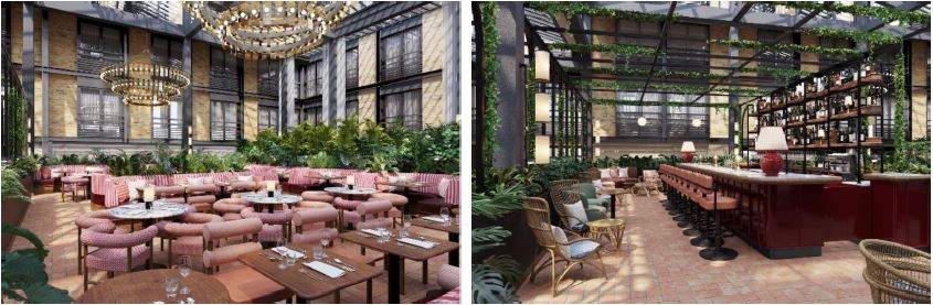 The scope of work includes the front of house public areas including the reception, entrance terrace, cocktail bar, restaurant, atrium and co-working area, as well as the Garden and Presidential Suite.