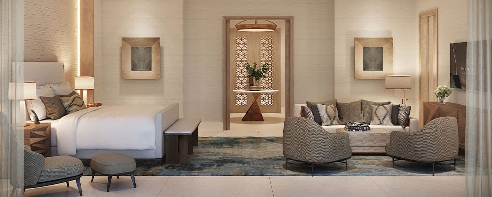 - Guest accommodations will swell by 89, bringing the total offering to 169 rooms and a remarkable 120 suites and chalets, including 28 new one and two bedroom suites (13 boasting private pools) and a lavish new beachfront Royal Suite spanning 565 square metres (6,000 square feet). The Resort is laid out in the form of an Arabian village, with Moorish-inspired architecture including roof domes, arched doorways framing sea views, and fountain courtyards beneath more than 3,000 palm trees.