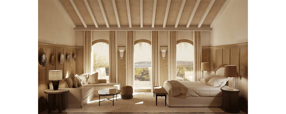 Inspired by St. Tropez’s signature charm, Gilles & Boissier architectural vision emphasizes a harmonious interplay of materials and textures. The lobby will feature textured plaster walls with intricate patterns and white stone flooring, while oman-inspired arches will complement warm wooden beams, evoking the character of Provençal farmhouses. Every detail is designed to balance elegance with rustic simplicity.