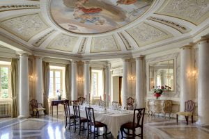 Within the main building are nine beautiful suites, all with high and intricately carved ceilings, antique floors and luxurious bathrooms. There are four more bedrooms in the Villa Bellini guesthouse. Gorgeous dining rooms, a music room, a movie theatre, workout studio and billiard table are available to guests for whiling the hours away. Outside are the amazing gardens; including a breathtaking swimming pool terrace all with a full five-star team of staff entirely at the guests’ disposal to satisfy their every whim.