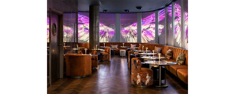 The contemporary lounge has a capacity of up to 120 standing and provides flexible seating options which can easily be re-arranged, whether it be for an upbeat DJ set or an exciting product launch the hotel lounge can effortlessly adapt for guests.This hidden gem offers modern-day luxury, with swathe walls, curtains that drape to the floor and bespoke artwork set against a striking bronzed background, offering true theatrical glamour with a contemporary twist. With AV equipment fitted and advanced wrap-around digital screens, the team can assist with creating a visual and vibrant setting. Boasting its own kitchen and bar, The Hotel Lounge is fully equipped to cater to gatherings of any size.