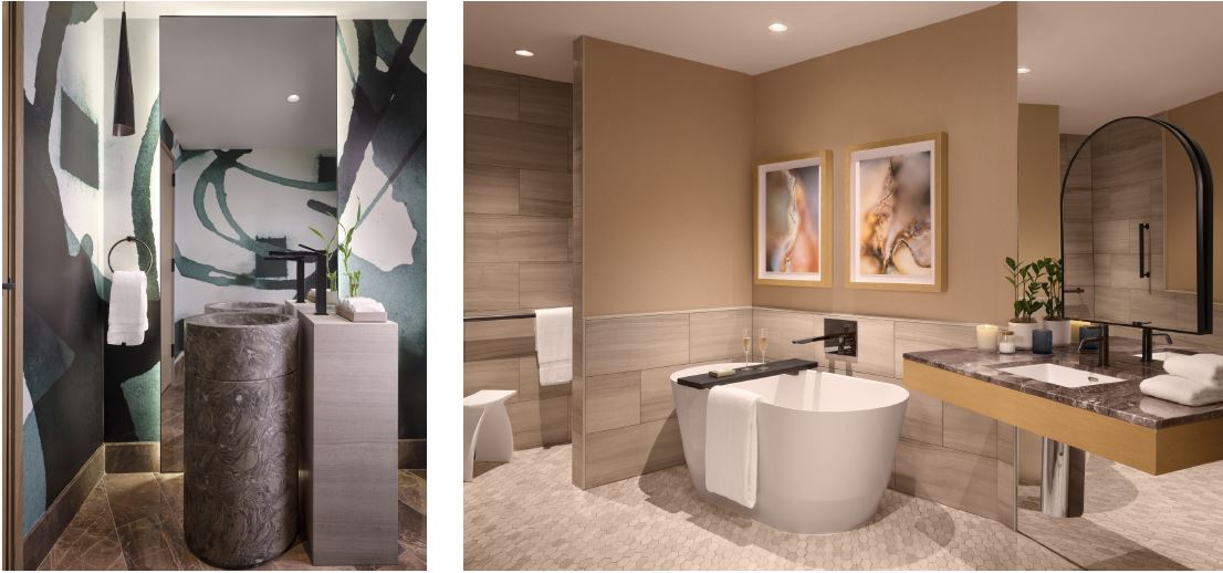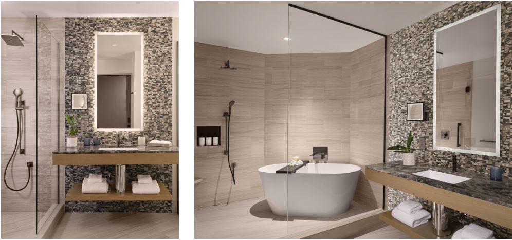InterContinental Bellevue. Left: Guest Room Bath. Right: King Jr Suite Bath, Both images credit: Will Pryce