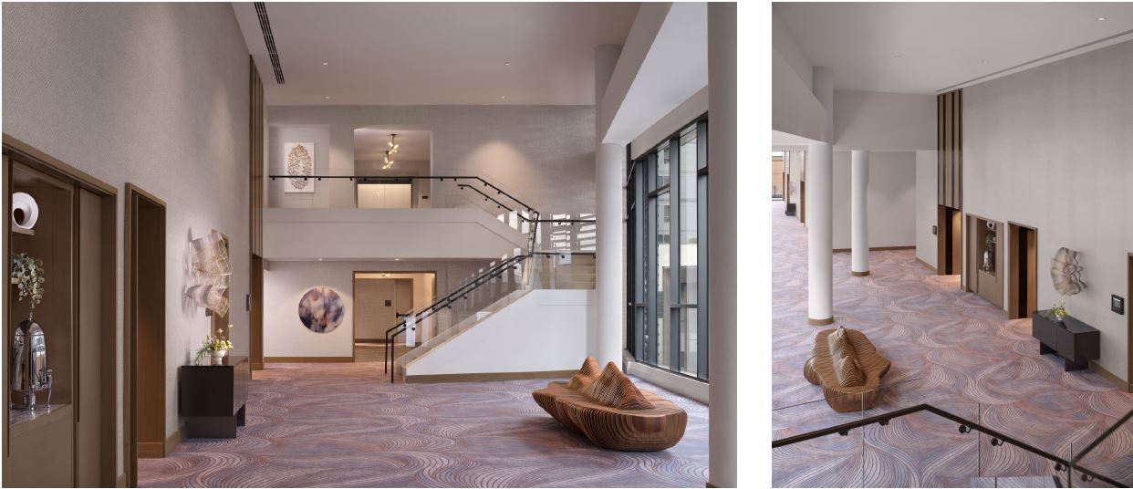 Inspired by the building’s graceful façade, the interiors of the 208-room InterContinental Bellevue at the Avenue echo its flowing lines and architectural geometry. A relaxing sense of luxury abounds as guests enter the lobby to an urban oasis redefined.