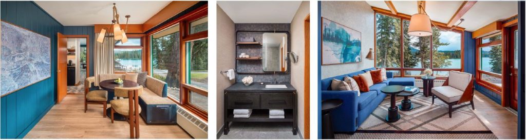 HBA San Francisco’s design for the Luxury Lakefront Suites and Jr. Lakeview Suites reimagines Jasper’s trading post legacy for today’s traveler. Playful energy meets restorative calm, inviting guests to embrace the seasons with a sense of discovery and ease, whether skating across a frozen winter lake or paddling brilliant blue waters under summer skies. Reflecting the tranquil rhythm of the landscape, the color palette layers soft neutrals and earthy browns with inky blues pulled from the depths of Lac Beauvert and rust tones that ground the interiors in warmth and heritage.