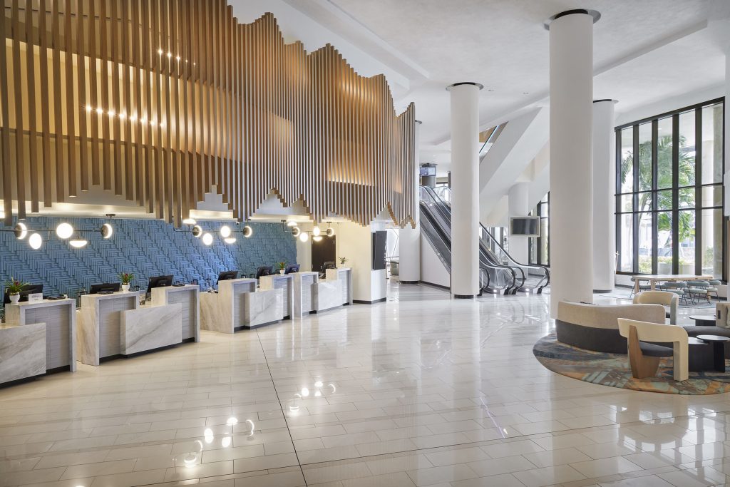 HBA San Francisco has completed the redesign of Miami Marriott Biscayne Bay, a 607-room hotel located at the intersection of Miami’s downtown arts & design districts. Drawing inspiration from the Wynwood murals, Art Deco architecture, and the legendary sunrises and sunsets of Miami, HBA San Francisco designers developed an elevated new identity for the interiors true to the locale, its history and its vibrant culture.