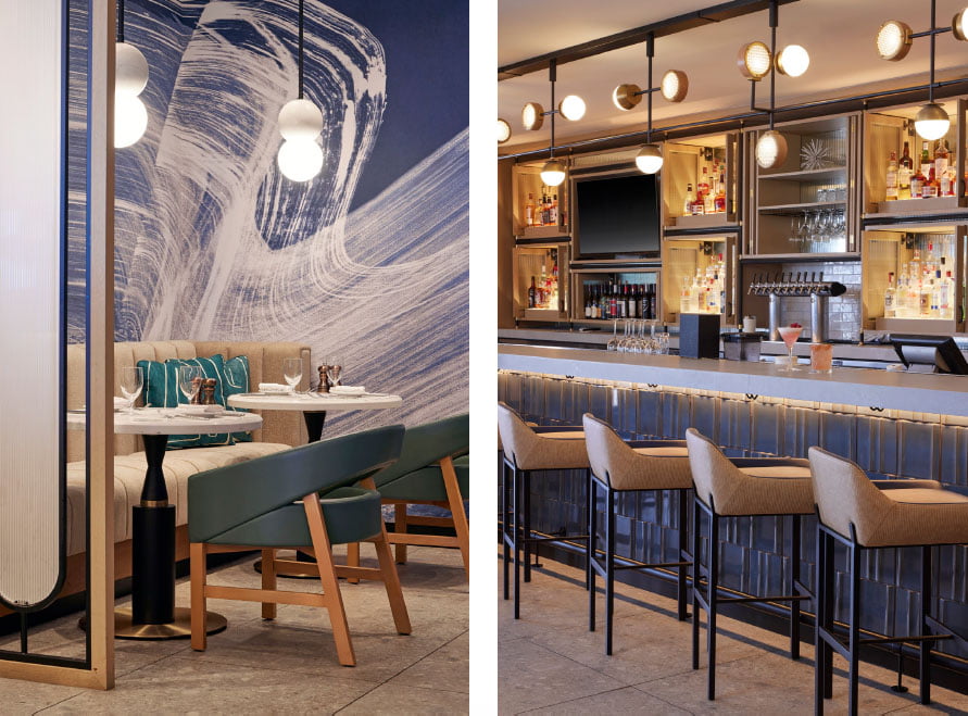 Left: Restaurant Banquette. Right: M Club Entry