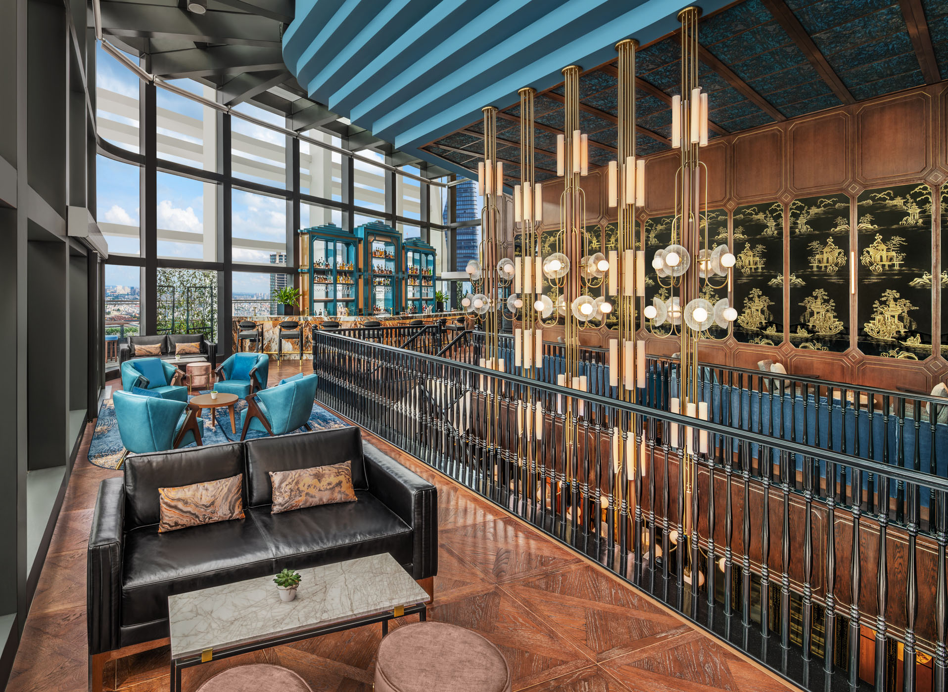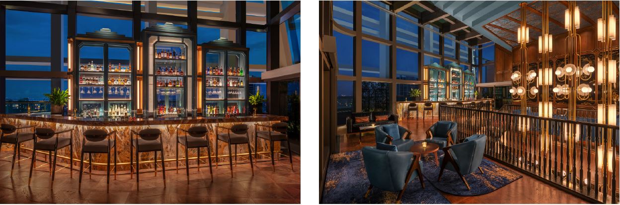 Located on the highest floor of Hilton Saigon, Song Bar encompasses wraparound views of the city skyline through its floor-to-ceiling windows, offering spectacular sunset views for its guests. The bar’s interior is a blend of oriental and contemporary design with rich wood panelling, plush velvet seating and striking statement lights.