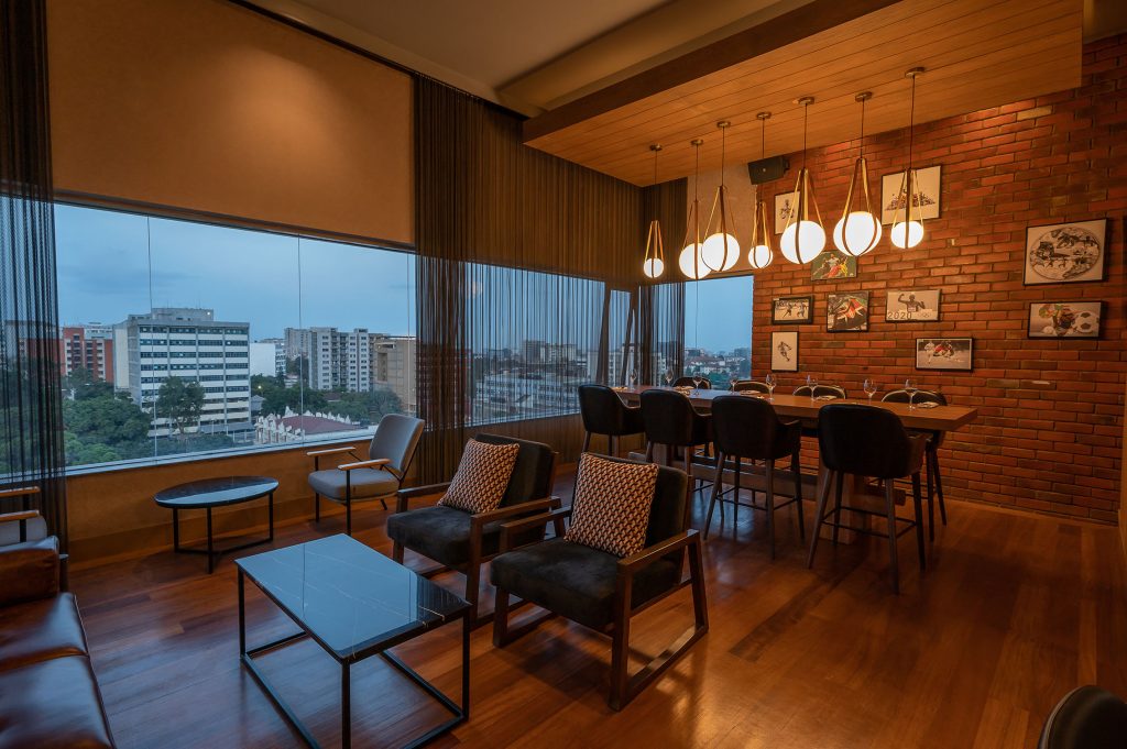 - District 6 Bar offers a captivating ambiance for guests to unwind in the evenings. Patrons are invited to enjoy a laid-back atmosphere with great music, an extensive selection of cocktails and beverages, and a menu with international and local favorites. Set on the west side of the building, District 6 overlooks stunning sunsets directly from its terrace.