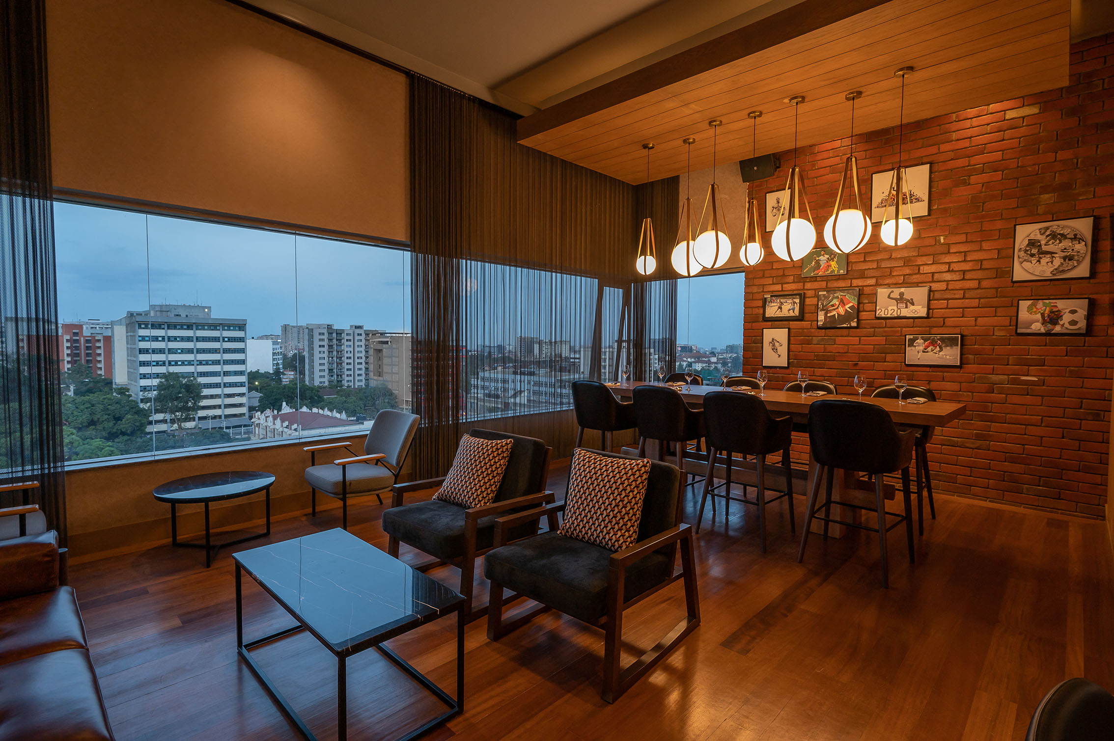 The top floor of the property features a stunning ballroom, one of the largest in East Africa, with views of every side of the city.