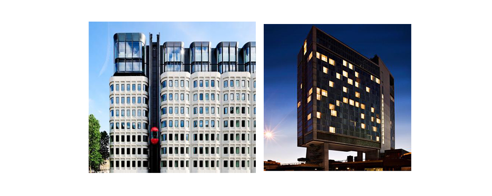 Above: The Standard, Bangkok Mahanakhon. Top: Standard Exterior, London and The Standard High Line, New York