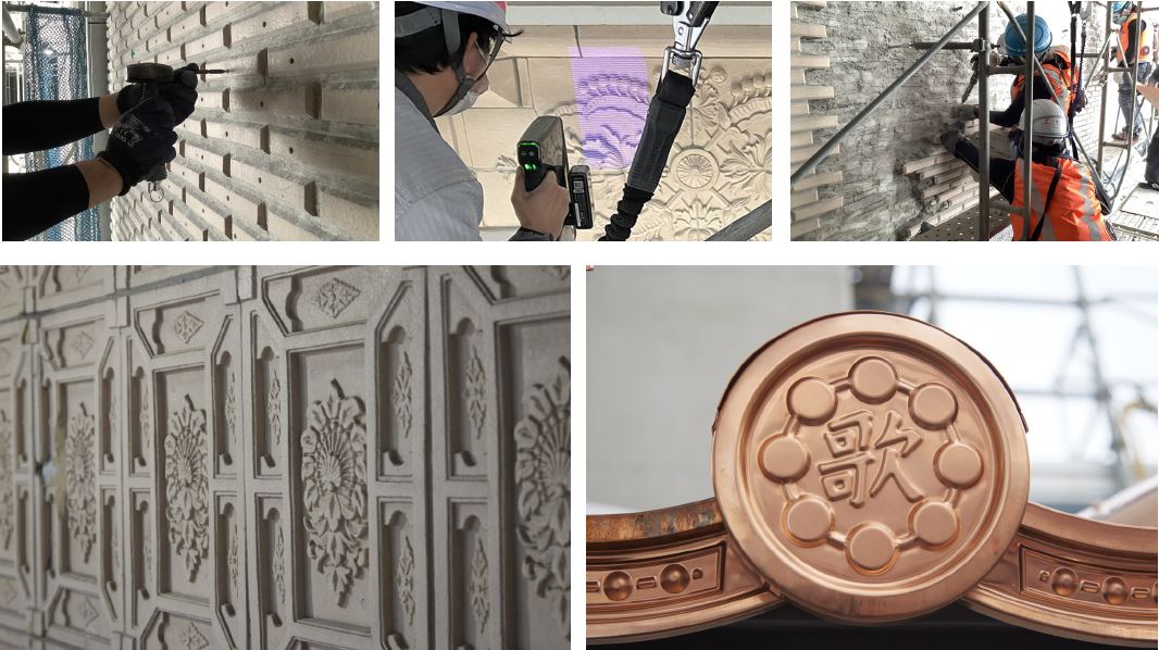 Upper: Preservation and restoration. Image credits Obayashi Corporation. Lower: Restoration and Terracotta details. Image credits Imperial Hotel