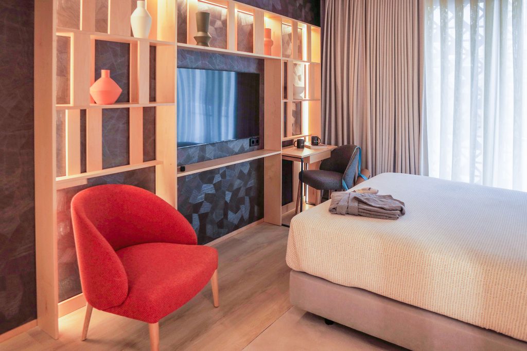 The hotel boasts 109 rooms designed with a sleek, contemporary aesthetic that combines style with functionality, ensuring guests enjoy a premium stay. Each room is equipped with state-of-the-art technology and sustainable features, complemented by a complimentary minibar stocked with a selection of snacks and beverages. Depending on the room category, guests can also enjoy additional amenities like a yoga mat or a premium coffee machine.