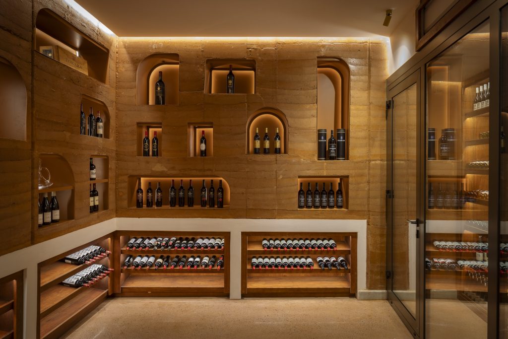 Melote House has been designed to be as sustainable as possible. Through the use of thermal mass, utilising rammed earth walls, planted roofs, large roof overhangs and embedding the building into the hillside, the building has minimally exposed elevations to the harsh external environment, providing a stable internal temperature for the building to manage. Furthermore, all power is generated on-site, using photovoltaic panels, and the heating and cooling systems make use of an innovative cooling system, significantly reducing the amount of energy required.