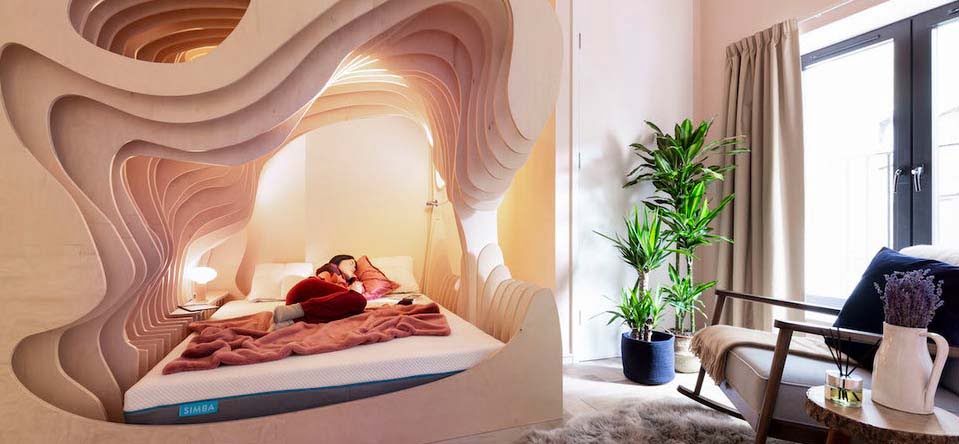 Designers have dreamed up the ultimate bedroom to help hotel guests quite literally sleep like a baby.