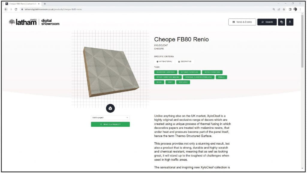 Despite the wholesale move to digital, James Latham’s market research found specifiers were still keen to receive a similar experience to the physical showroom in an online iteration.