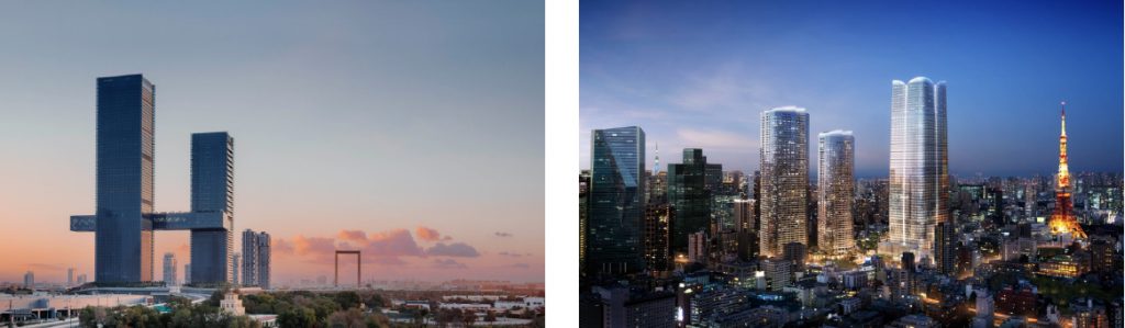 Left: One&Only One Za’abeel Dubai, UAE. Right: Janu Tokyo, Japan. Aman Residences, Tokyo (right) and Janu Tokyo (centre), part of the Toranomon-Azabudai development. Images: Courtesy of Aman for hotel images and courtesy of Denniston for Jean-Michel Gathy portraits.