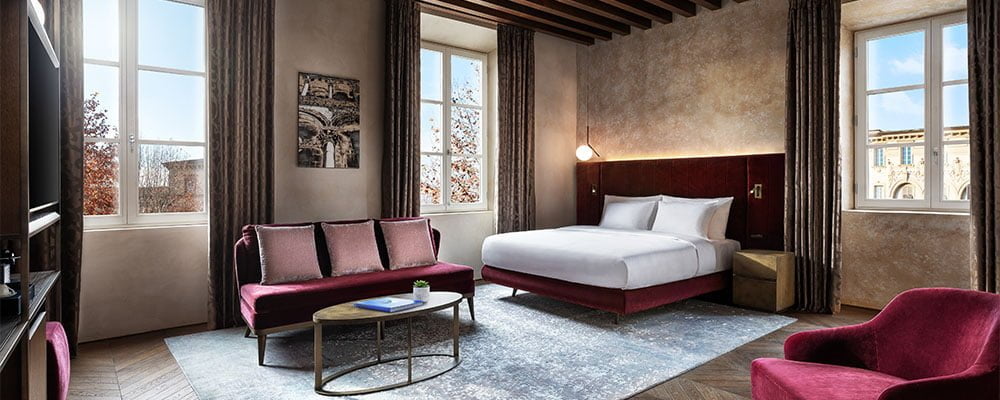 The recently opened Grand Universe Lucca, Autograph Collection is a historical beacon in the city of Lucca, at the foot of the Apuan Alps. Standing gracefully overlooking Piazza del Giglio and Piazza Napoleone, Grand Universe Lucca has evolved through the millenniums, from a glassblower’s atelier in the Roman era, to a majestic palazzo during the Renaissance, and a monumental hotel in the mid-18th century.