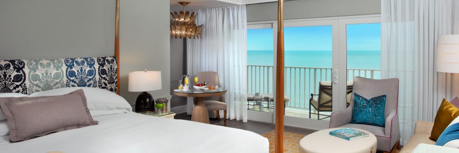 The resort’s signature restaurant, BALEEN, will house a four-foot wide sculpture reminiscent of a whale-bone designed by Barcelona artist Sophie-Elizabeth Thompson. Famously known for Naples fine dining, the restaurant will also reveal new finishes of textural wicker, natural shell stone, and cerused oak panelling. The restaurant is also known for its toes-in-the-sand dining experience on the beach, providing diners with the ultimate romantic setting.  Guests who choose to stay in the Gulf Tower, featuring endless views of the Gulf of Mexico and private balconies to view the famous Naples sunsets, will enjoy new oversized, organic patterned area rugs, four poster beds with Floridian-patterned textiles, unique photography, and a canvas oil art collection.  Well-appointed bathrooms will introduce new backlit vanity mirrors and silver trimmings throughout.