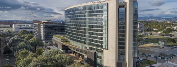 The globally renowned architecture firm Goettsch Partners has announced the completion of the Grand Hyatt Bogotá, a new, 372-room hotel complex with a 230-foot- tall elliptical tower marking the symbolic center of an 18-building commercial complex now under construction midway between Bogotá’s historic center and its airport. The new hotel, replete with helipad for visiting dignitaries, has debuted this fall as one of South America’s preferred destinations and accommodations. The Grand Hyatt Bogotá also signals another landmark addition to the extensive portfolio of hospitality architecture by Goettsch Partners – known globally as GP – spanning 30-plus major hotel projects and more than 50 million square feet of facilities on three continents.