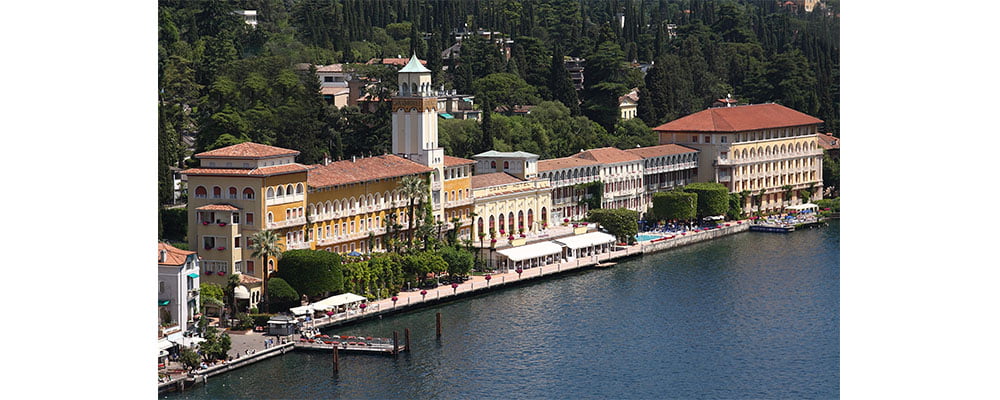 The traditional town of Gardone, located on the western bank of Lake Garda, sits against a backdrop of scenic mountains. Red clay roof tiles adorn the buildings throughout the town, including Grand Hotel Gardone Lake Garda, which is one of the most prestigious addresses along the Gardone Riviera. The hotel has been a key landmark on the lakefront since 1884, welcoming many cultural icons throughout its history. Gardone and nearby Salò offer guests cultural attractions including a number of charming local restaurants, bars and shops, as well as a ferry port for guests to take boat rides across the lake. Verona Airport and Milan Bergamo airport are both situated within an hour´s drive from the hotel.