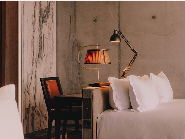 The rooms and suites embody a form of refined luxury, characterized by expansive marble panels and sliding mirrors.
