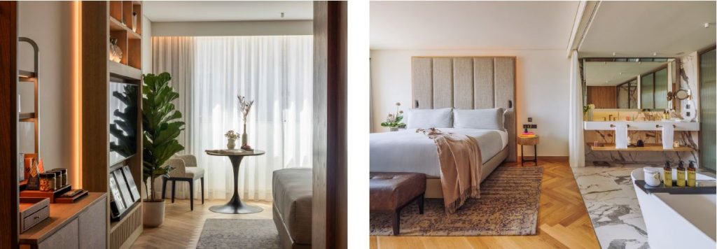 Across 213 rooms and suites, ME Lisbon delivers a layered experience of comfort, character, and sweeping views – from treetop vistas over Eduardo VII Park to the São Jorge Castle and the Tagus River. At its pinnacle stands the Ultimate ME+ Suite, a 107m² sanctuary offering exclusive ME+ services and uninterrupted access to Lisbon’s skyline.