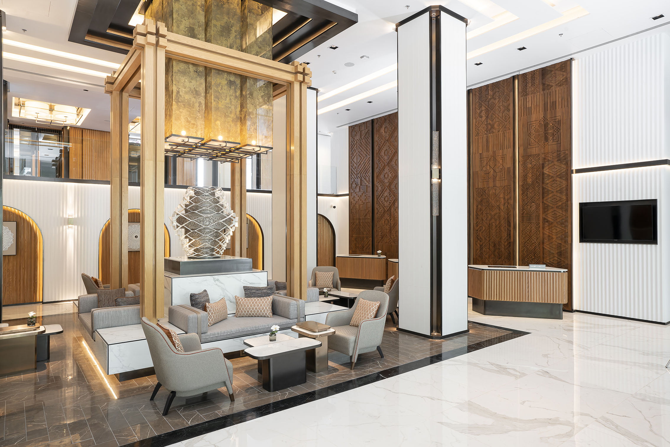 The lobby’s aesthetic centrepiece is the tung sai, an objet d’art which sits in the centre of the foyer