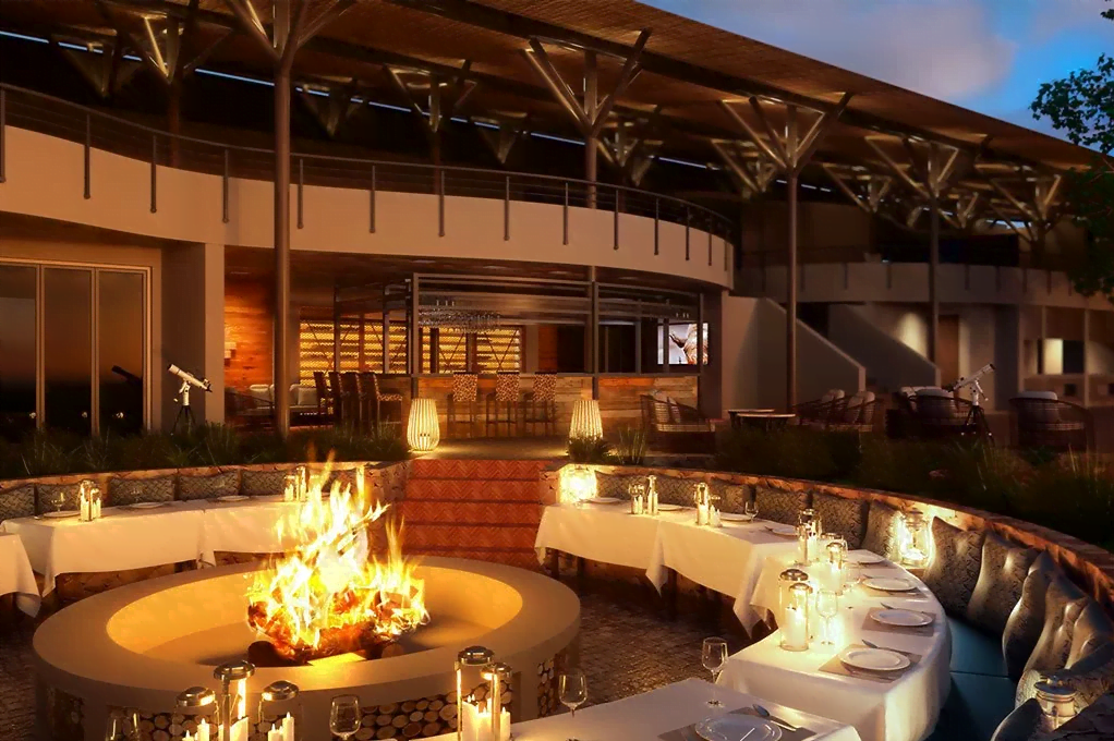 The hotel has been designed with the protection and preservation of the surrounding environment in mind. Approximately 45% of the energy to power the lodge is generated by solar panels, and the hotel has taken further steps to cut energy usage on the property through its expert design, which allows the easterly bush breeze to flow through the rooms, cooling them naturally and removing the need for air conditioning units. The kitchen facilities include an on-site incineration plant which derives compost from organic waste for distribution to local farmers.