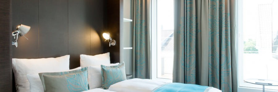 All bedrooms are designed in the contemporary Motel One style and offer a calm and comfortable night’s sleep thanks to 100 per cent Egyptian cotton bed linen. However, this hotel is leading the way for Motel One with new in-room upgrades and accessories, including an armchair by designer Freifrau and a table by Vitra. Some rooms have terraces with views to the city walls and rooms on the top floor offer a balconies.